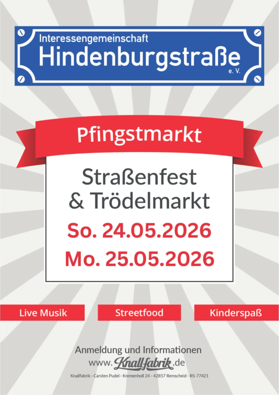 Pfingstfest auf der Hindenburgstrasse am 24. & 25. Mai 2026 von 10.00 Uhr bis 18.00 Uhr